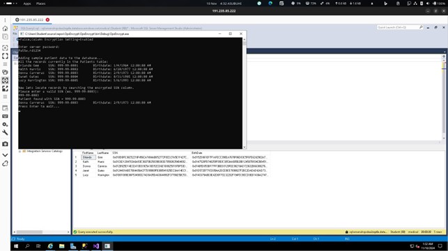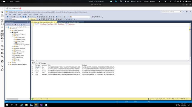 ✅ Expected Output: The retrieved SSN and birthdate should appear encrypted in SQL queries.