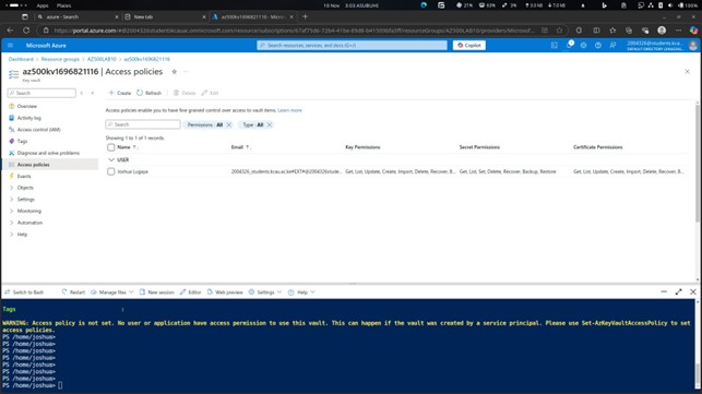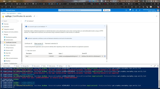 ✅ Verification: The Objects section in Azure Key Vault should display the configured key and secret.